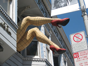 This is one of the landmarks - fishnet-stocking clad legs above a very gaudy lingerie store (that mostly caters to cross-dressers, from what I saw).